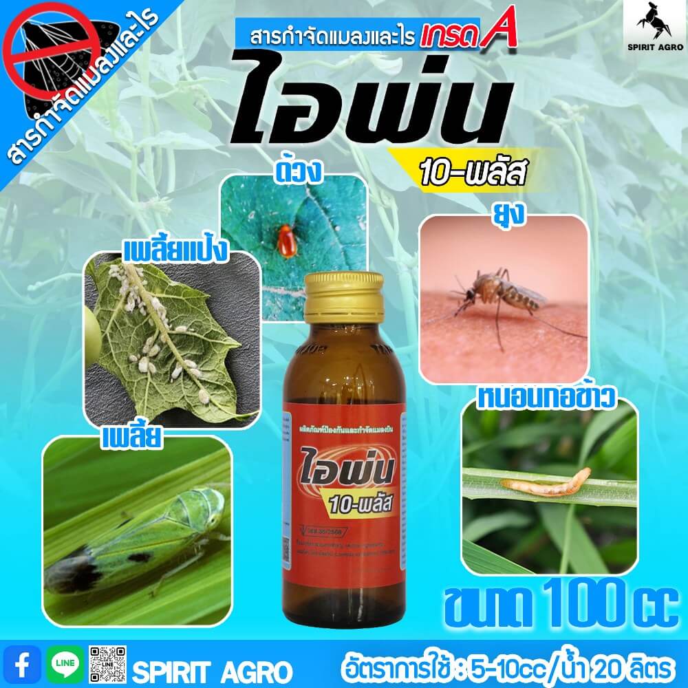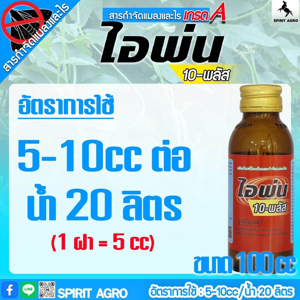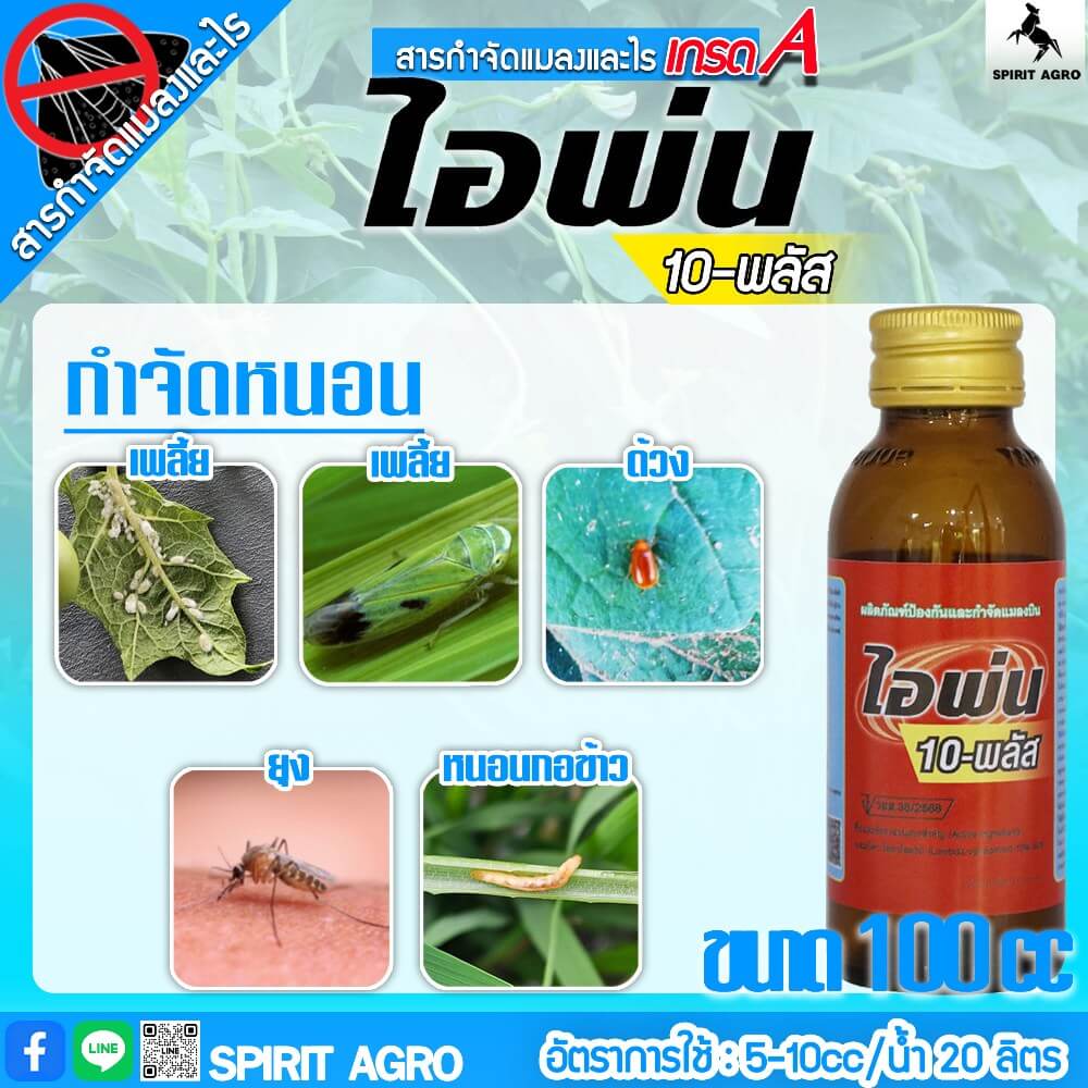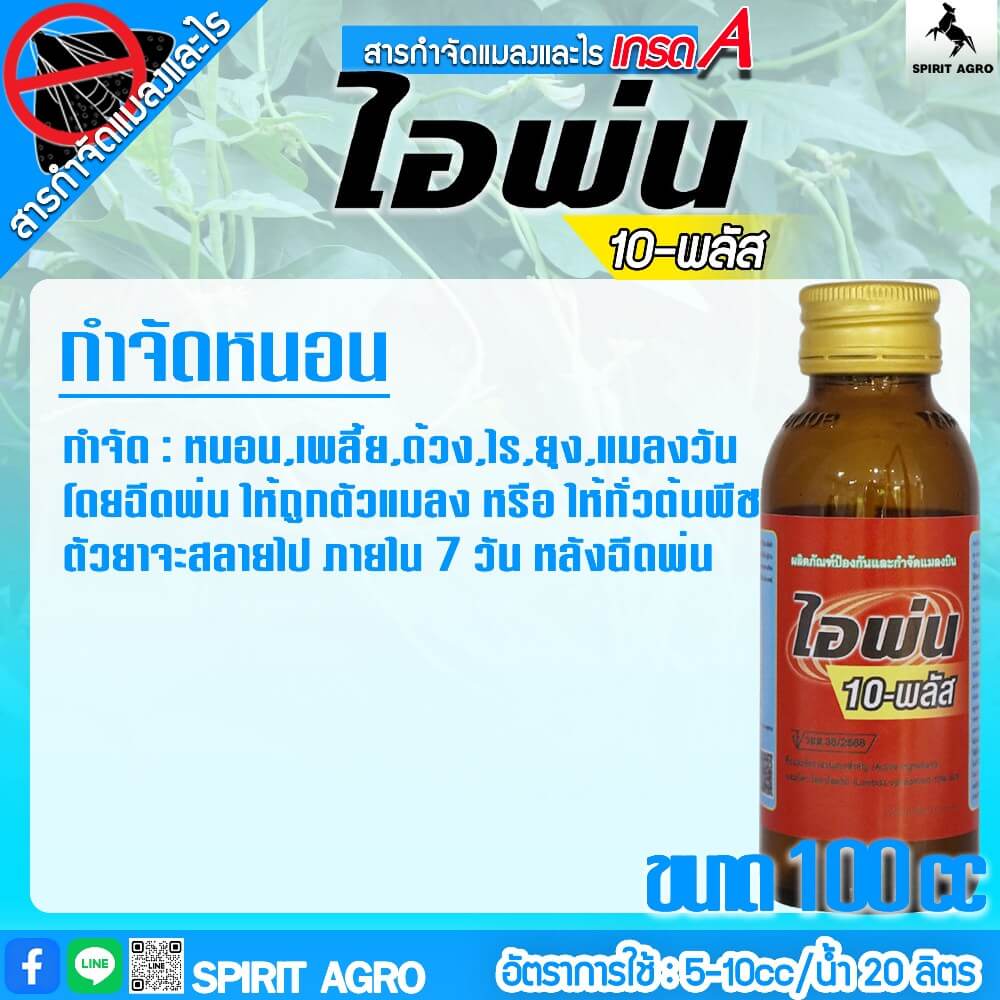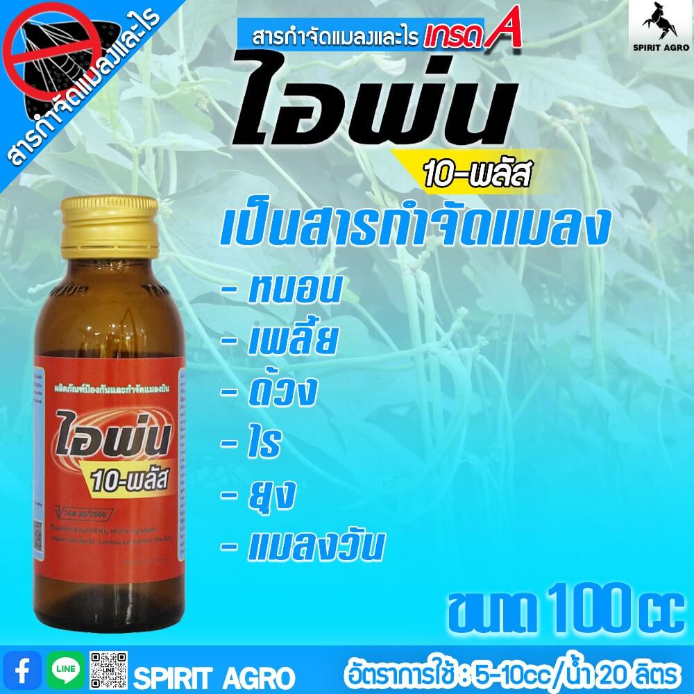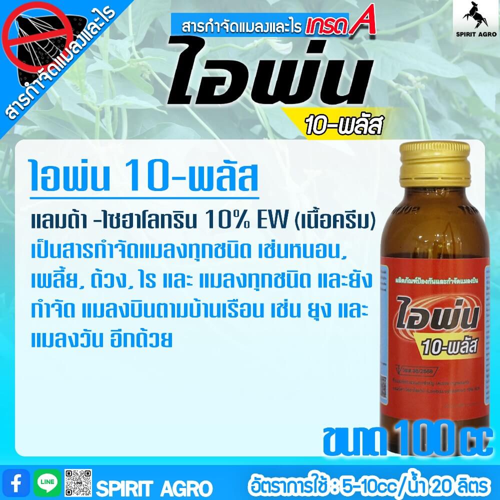👉 ไอพ่น 10-พลัส : แลมบ์ดา-ไซฮาโลทริน 10% EW (เนื้อครีม) มีความเข้มข้น มากขึ้น 4 เท่า เป็นสารกำจัดแมลงกลุ่มไพรีทรอย ประเภทไม่ดูดซึม ออกฤทธิ์ในทางสัมผัส และกินตาย กำจัด หนอน เพลี้ย ผีเสื้อ ด้วงและ ไร ชนิดต่างๆ และยังกำจัด แมลงบินตามบ้านเรือน เช่น ยุง และ แมลงวัน อีกด้วย